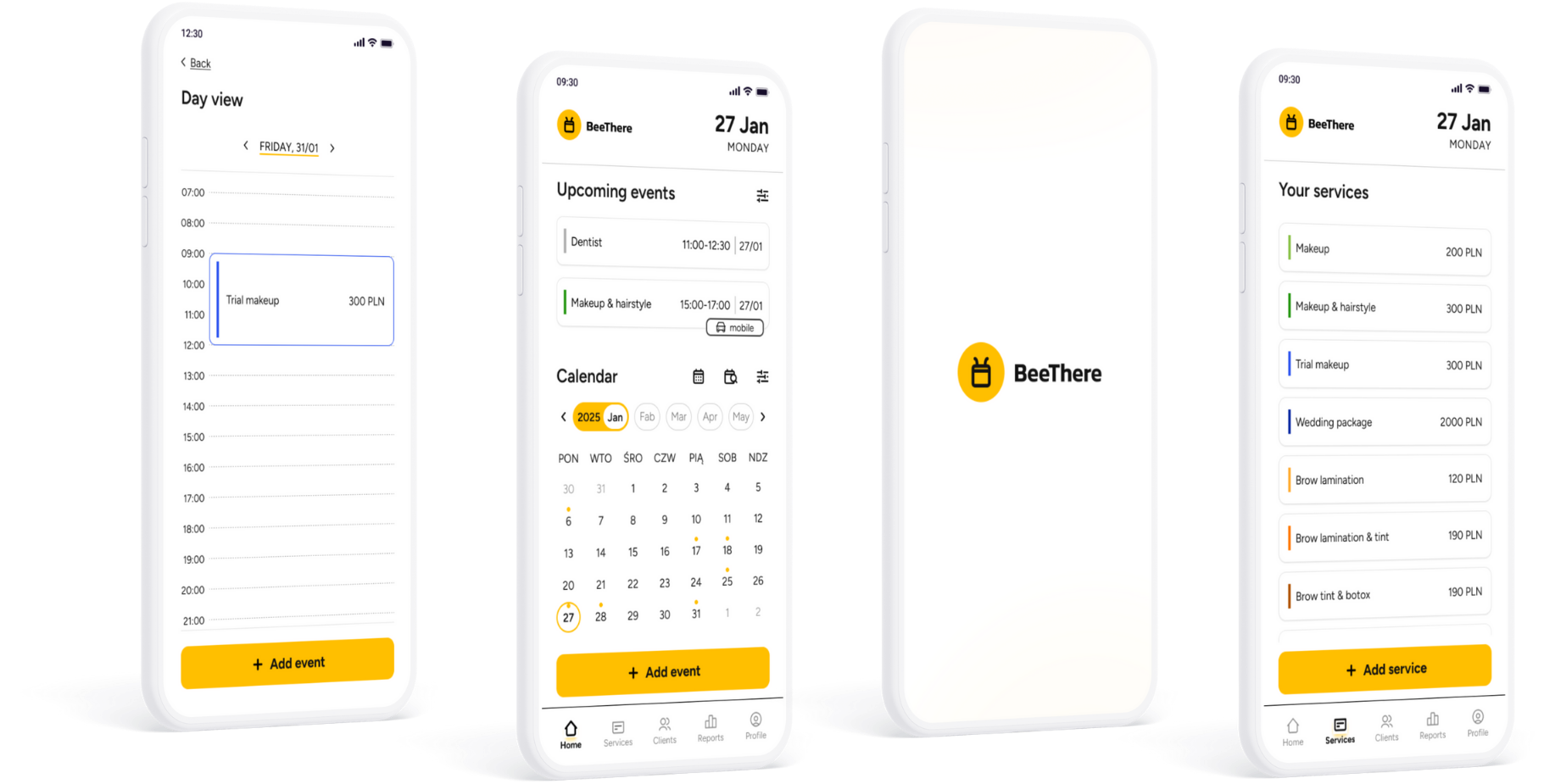 BeeThere is an application designed for freelancers in the wedding and beauty industry. It serves as a comprehensive calendar with features for creating a service catalog and maintaining a client database, tailored to the specific needs of this target group.