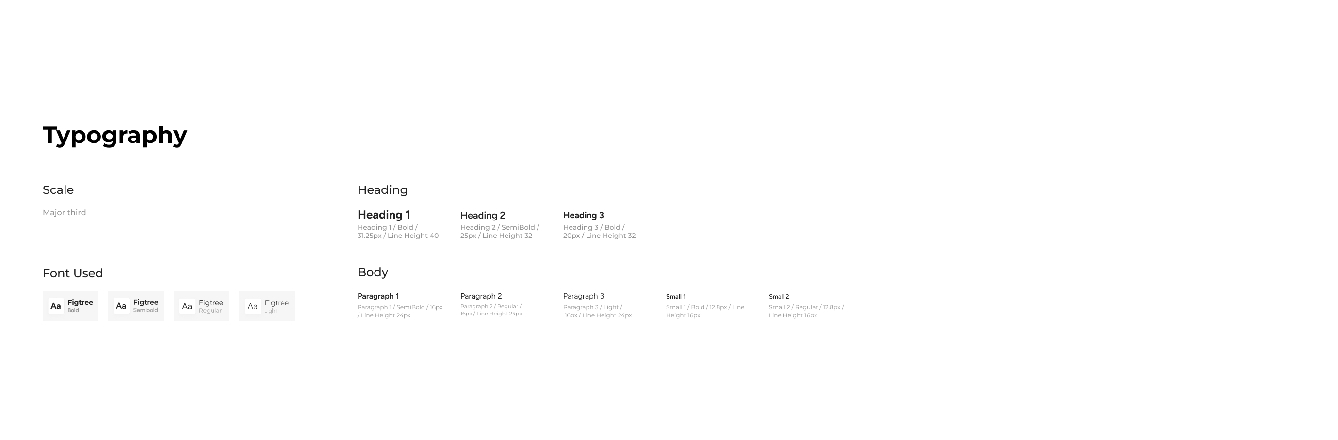 Considering the app’s content-heavy screens, I selected the sans-serif font Figtree and applied a Major Third scale. This choice balances subtle size variations for clear hierarchy with readability, avoiding visual clutter and ensuring comfortable spacing.